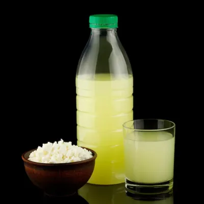 Whey is the liquid remaining after milk has been curdled and strained, rich in protein and commonly used in sports nutrition, baking, and as an ingredient in various food products.